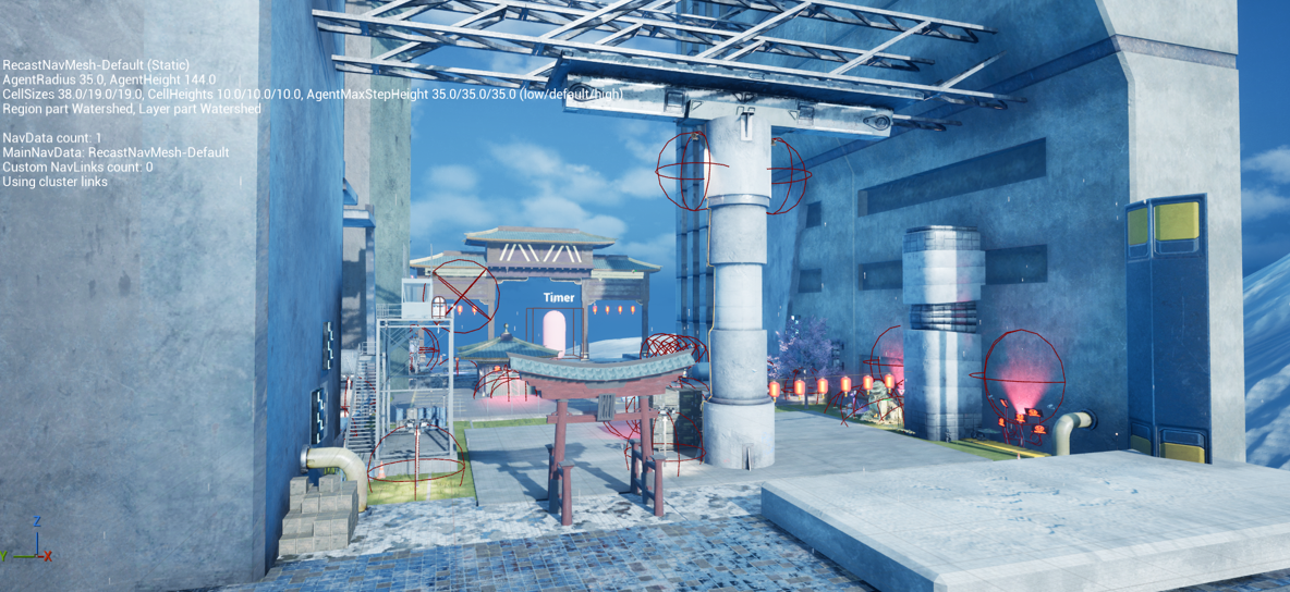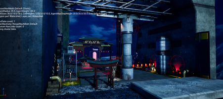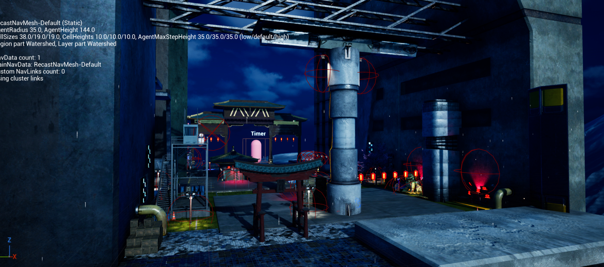 Saturation set to 1.1, contrast set to 1.2, gamma set to 0.8. Min and Max EV set to -0.5. Path tracing turned off because it caused framerate issues. My main goal was to make the nighttime scene actually look like night. Through some trial and error, I was able to accomplish this goal. I had gotten some feedback from people that the scene was too dark, so I changed the skylight to 1 lux to 3.5 lux. This ended up fixing the problem. I also moved the positioning so the shadows weren't cast quite as far. The images above are before post-processing and after.